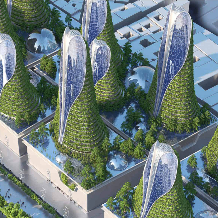 K dosažení tohoto cíle má k dispozici tzv. „fotosyntézní věže“. Jedná se vlastně o vertikální parky. Dalším nápadem je „ekologický koridor“ dlouhý více než 20 kilometrů obklopený zelenými věžemi, jejichž cílem je snížit smog ve městě.