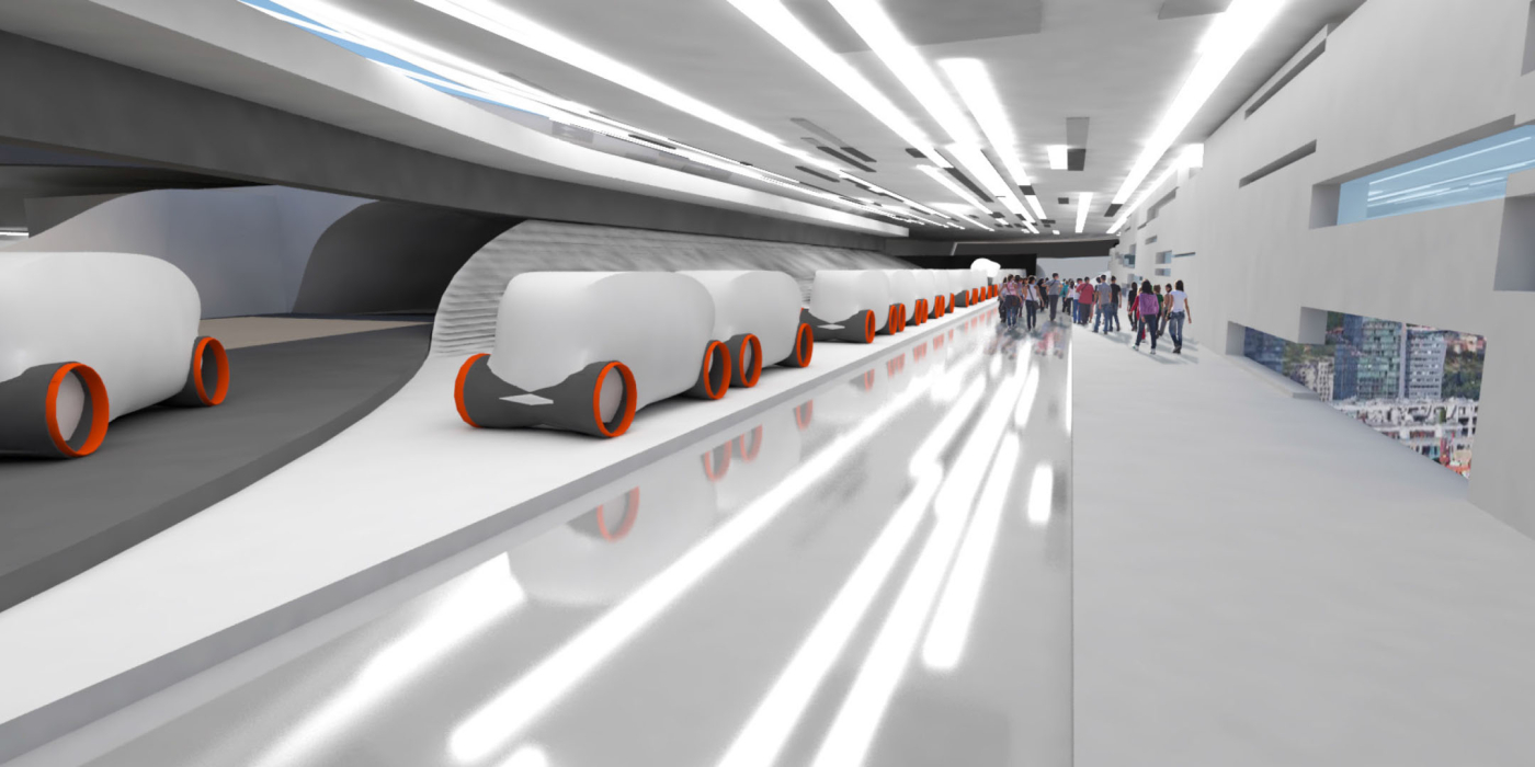 Projekt terminálu rychlodráhy Hyperloop pro Prahu od Jana Kovaříčka se zaměřuje na novou definici typologie dopravy pro meziměstskou dojížďku.