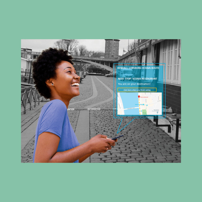 Mobilní aplikace pro snadnější orientaci, přepravu, sport, rekreaci a další aktivity podél řeky Vltavy. Návrh: Isaac Marqez a Hedy Lemus Bird