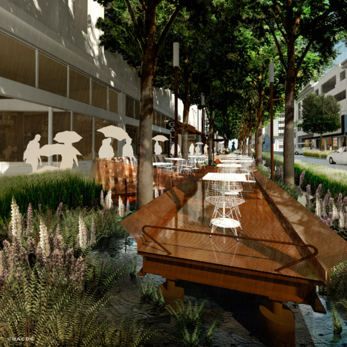 A tak řešení mělo být navrženo tak, aby umožňovalo bezpečnost pro všechny uživatele ulice — chodce, cyklisty, motoristy i pro veřejnou dopravu. Výsledkem je uliční konfigurace, která propojuje veřejné i soukromé prostory a nechává vzniknout větší prostor pro chodce, potažmo pak i pro novou kreativní ekonomiku.