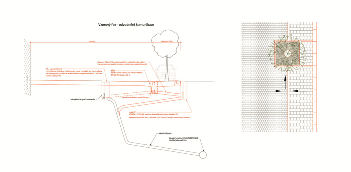 Odvodnění komunikace. Plánek: TaK Management s.r.o.